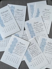 手書きの文字「カリグラフィー」でデザインをしたカレンダーを一枚一枚心を込めて印刷しています。